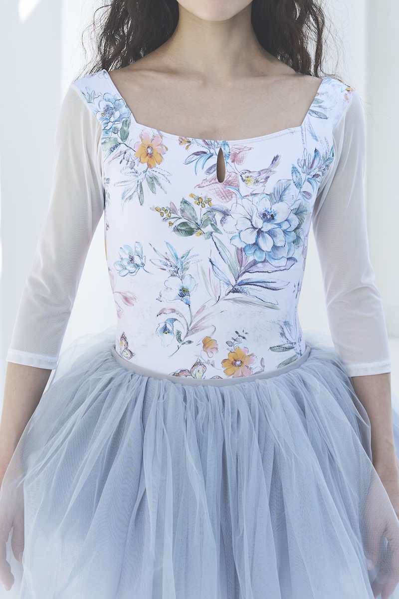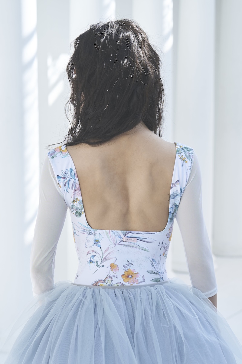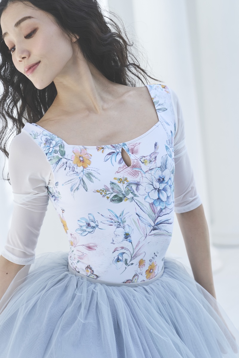 デコルテのスクエアラインとバックスタイルが美ラインなレオタード。