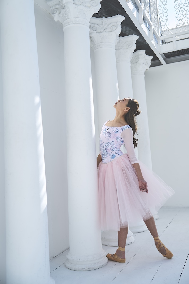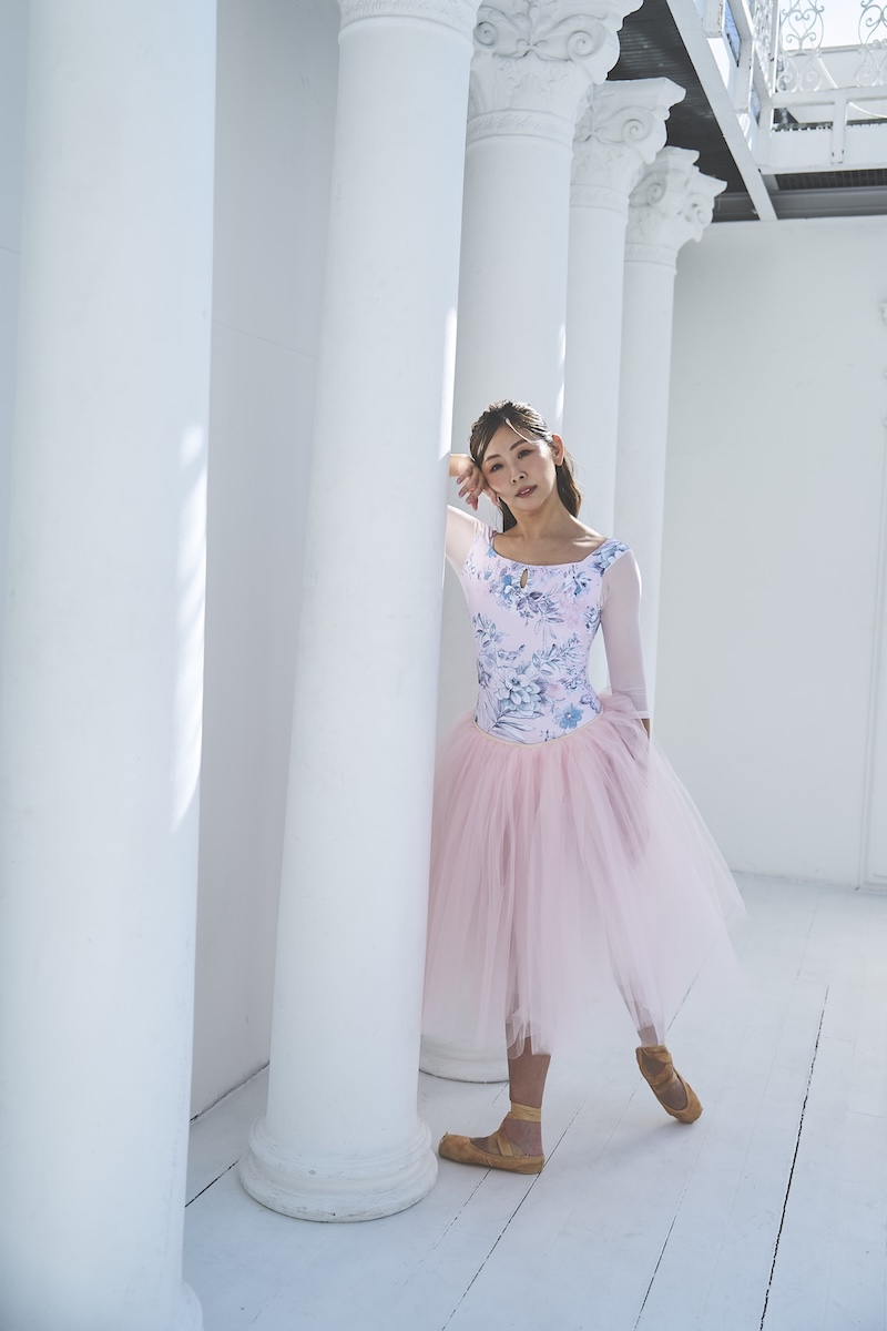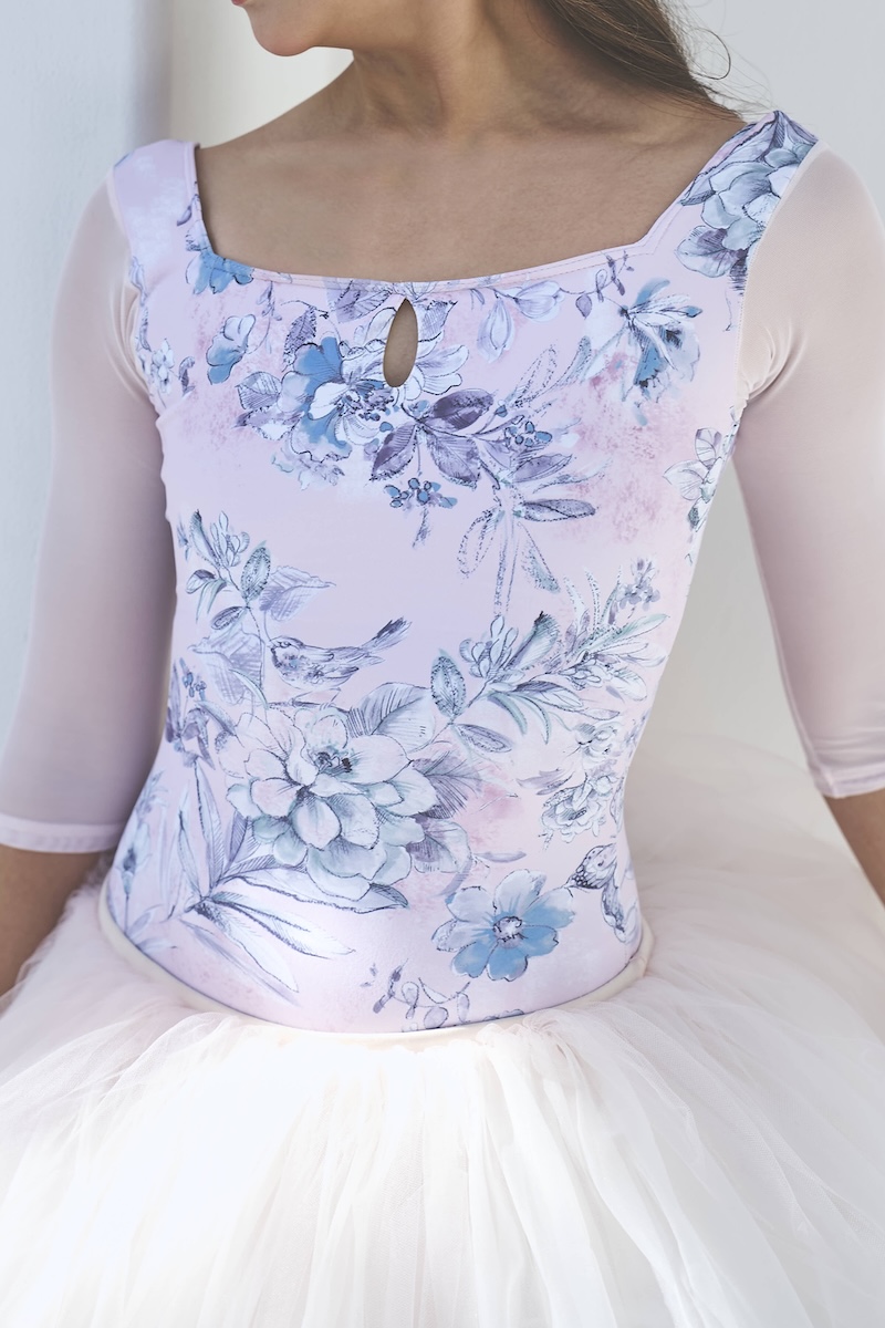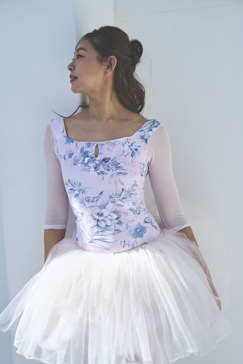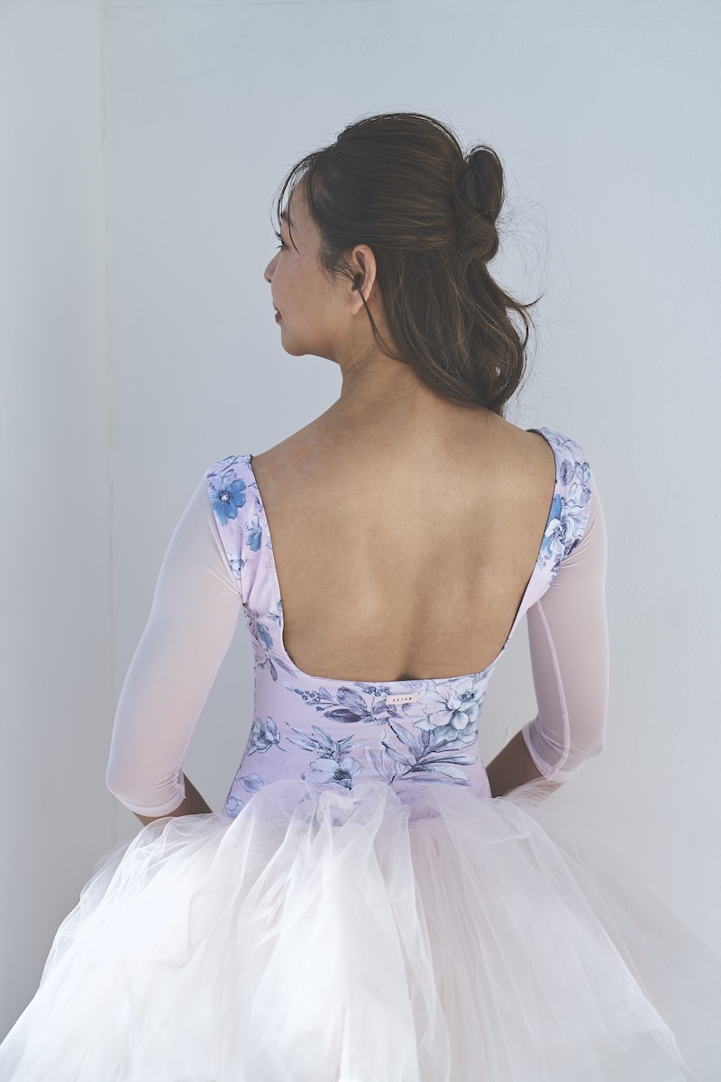 デコルテのスクエアラインとバックスタイルが美ラインなレオタード。