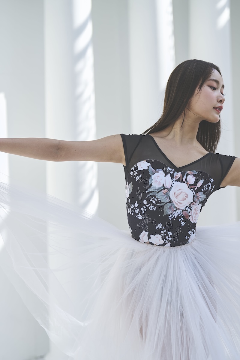 胸元のクロスVがポイントのシンプルな美ラインレオタード。