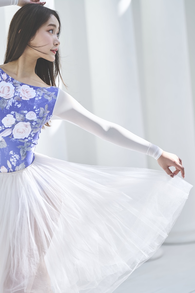 ボートネックレオタードと長袖がドッキングされた大人気の型。