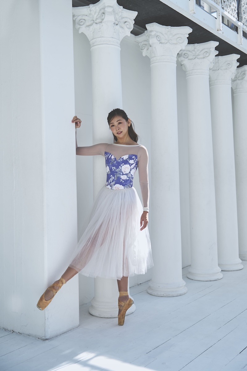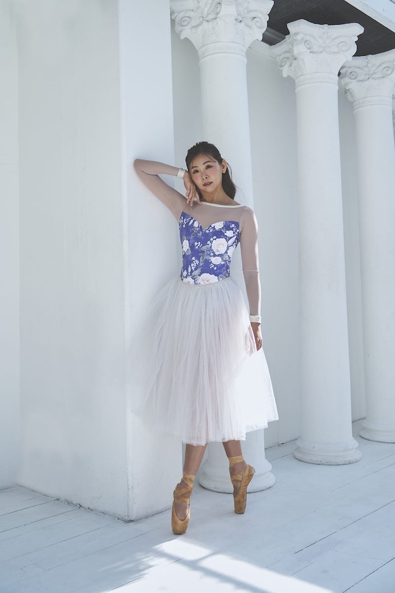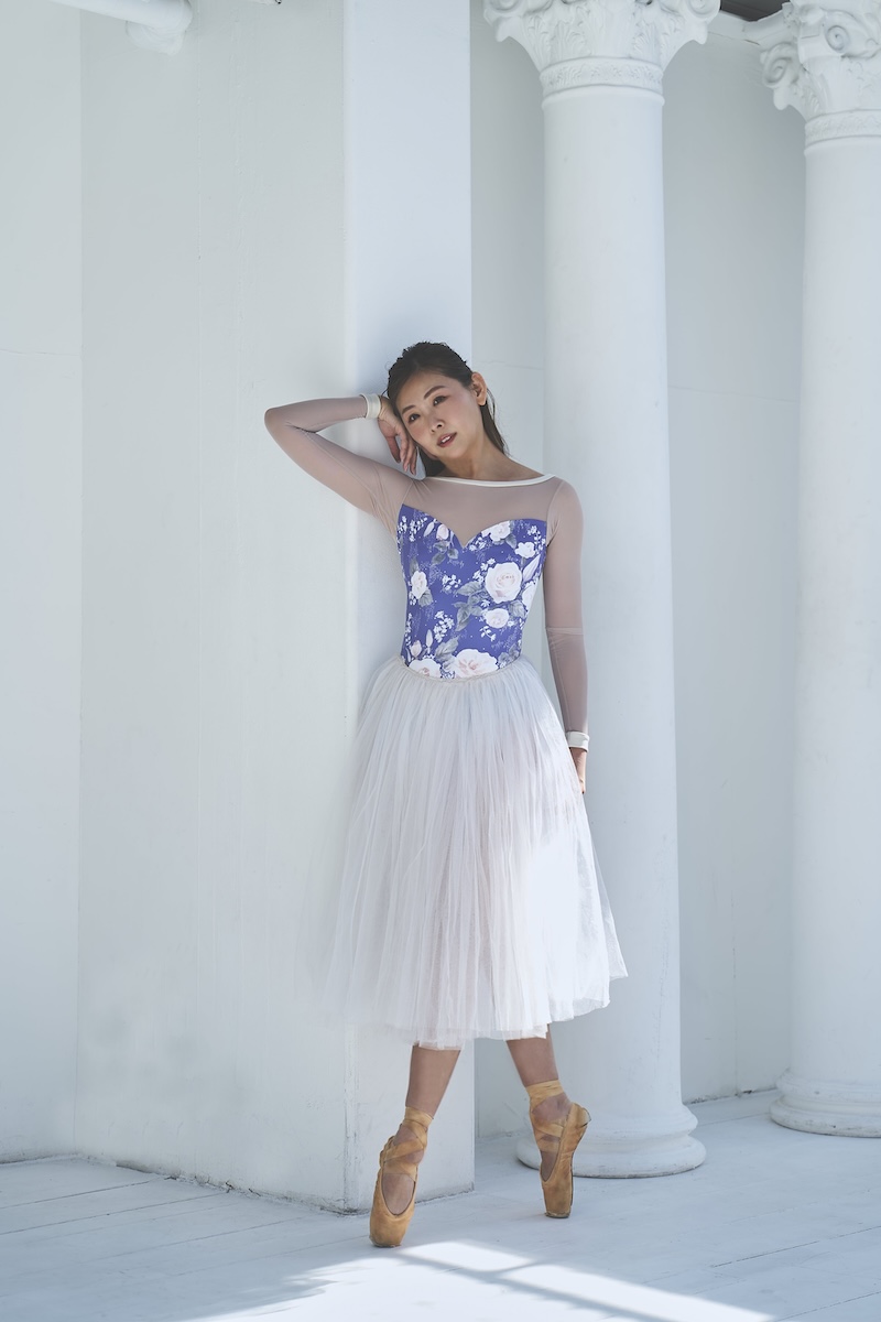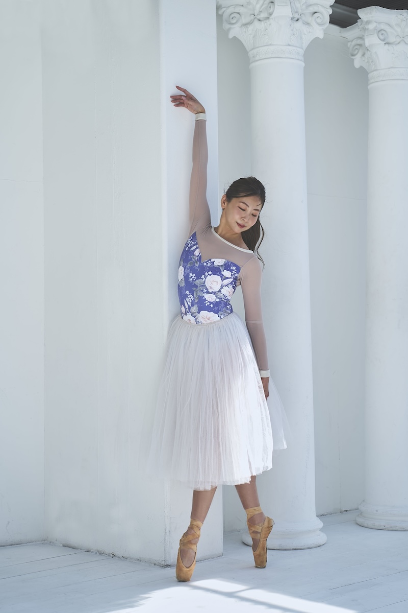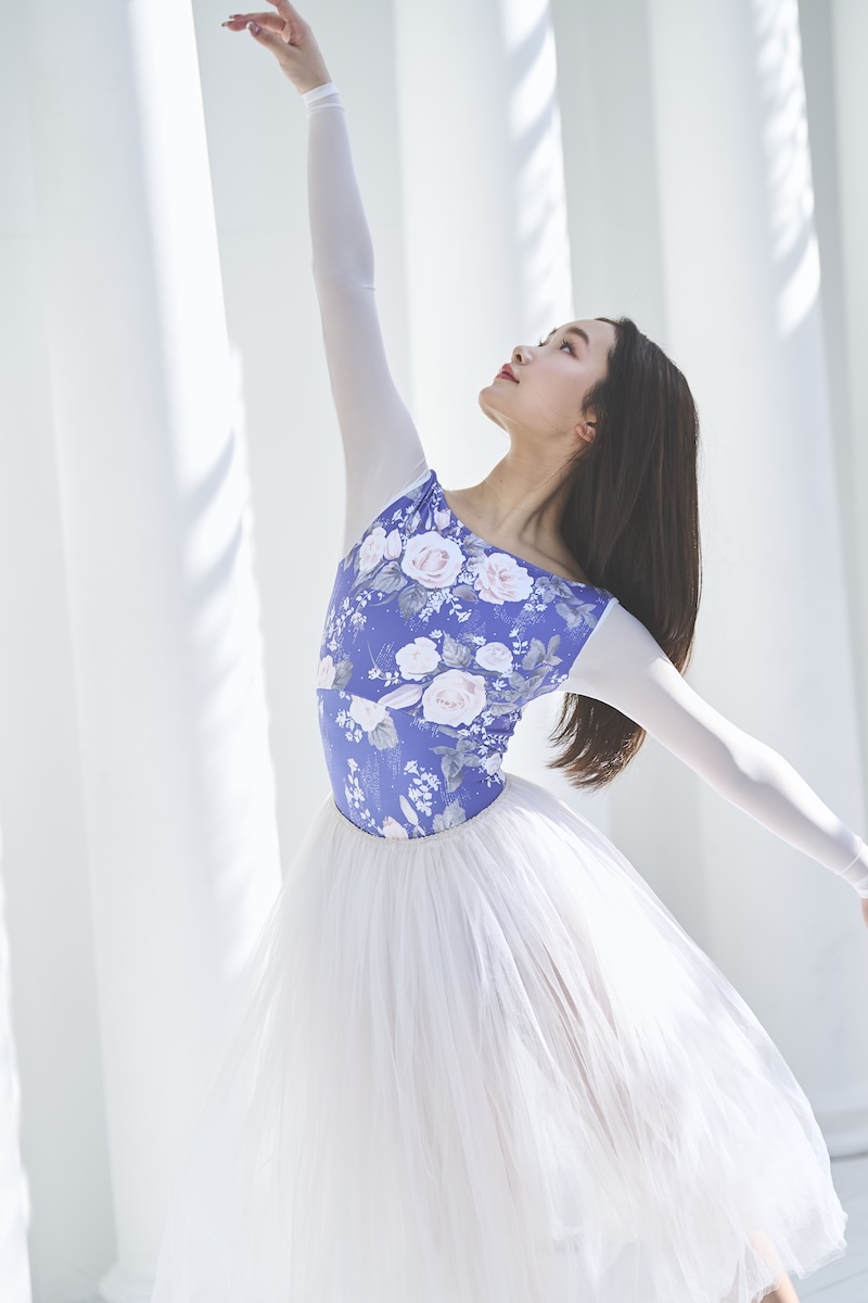 明るめのブルーをベースに、優美なローズを重ねた、透明感のあるカラーリング。
