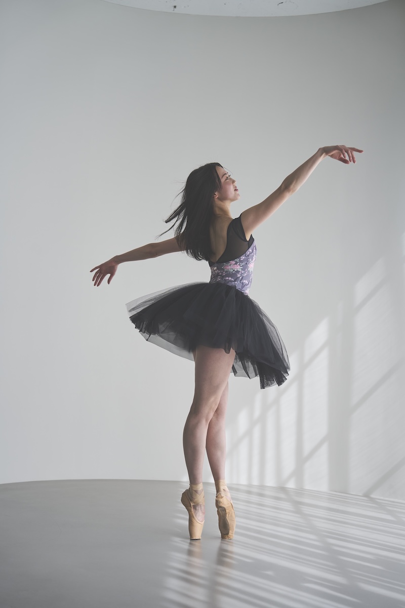 blackのパワーネットが肩まわりをすっきりと引き締め、上品さの中に“モードな表情”を添えています。
