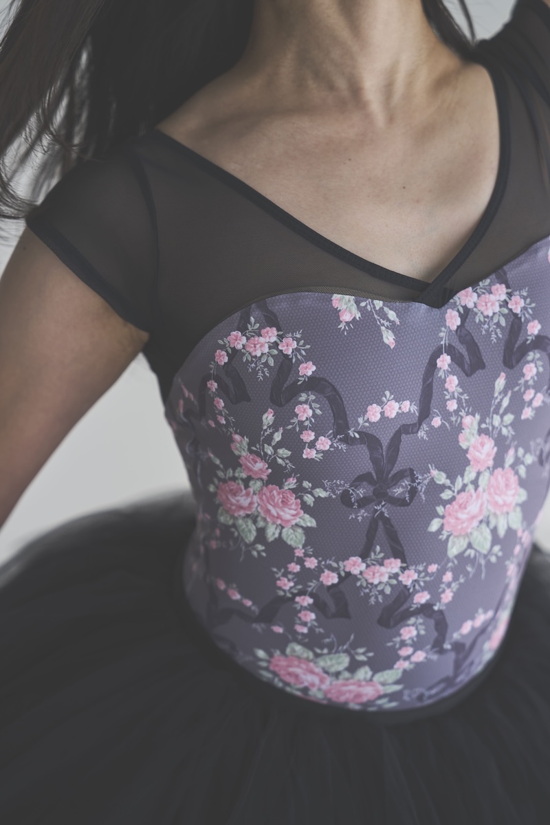 落ち着いたグレーをベースに、赤みを帯びたローズモチーフを重ねたシックなカラーリング。