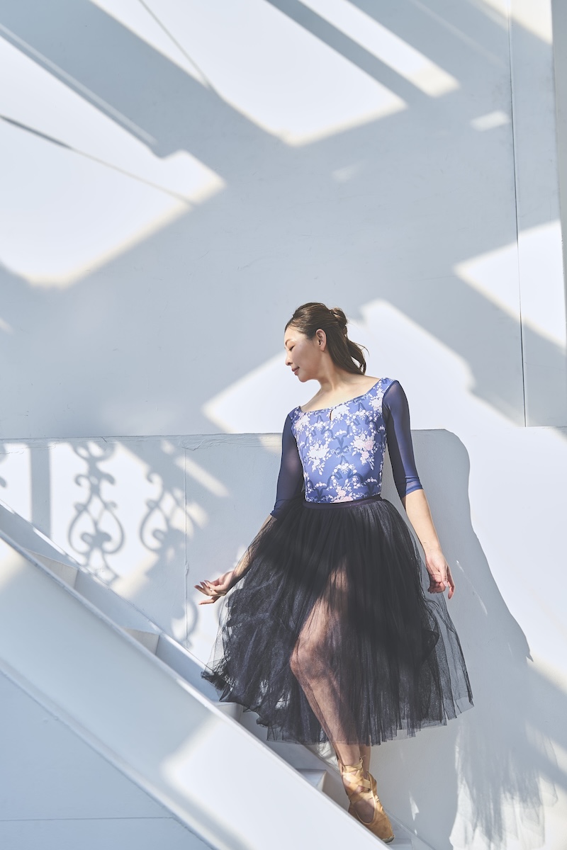 デコルテのスクエアラインとバックスタイルが美ラインなレオタード。