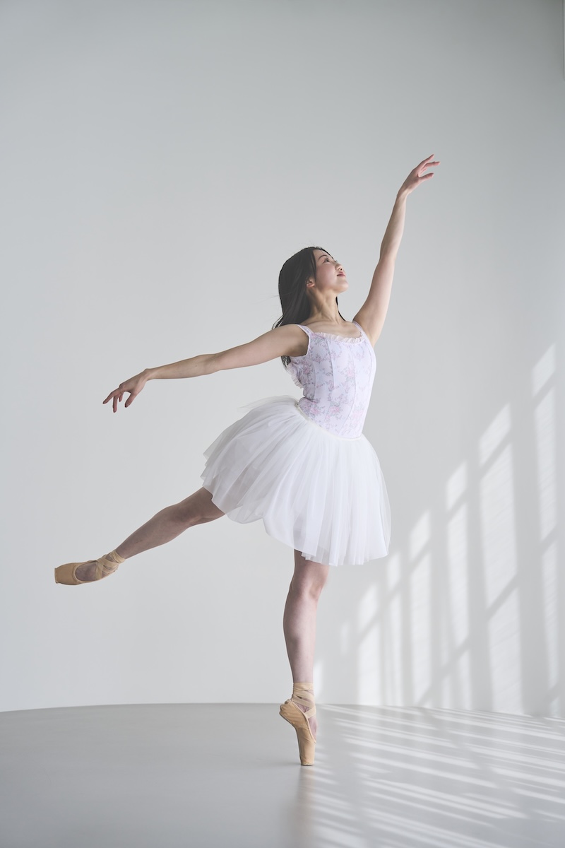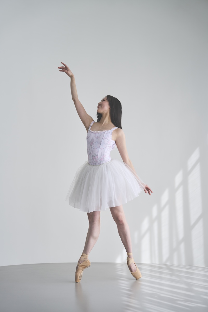 デコルテのスクエアラインとバックスタイルが美ラインなレオタード。