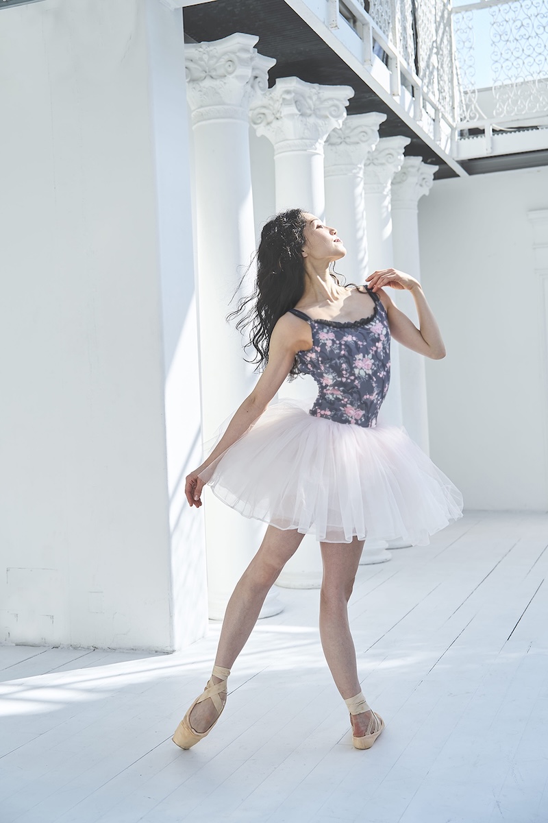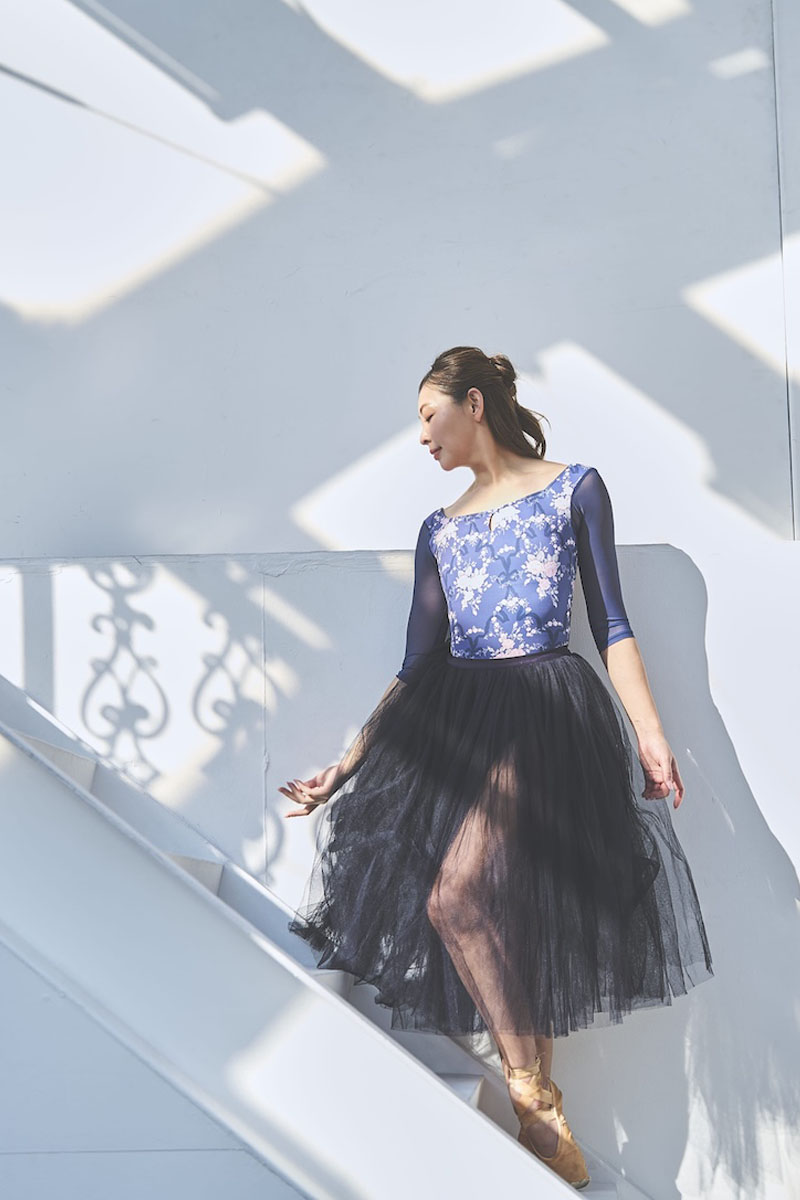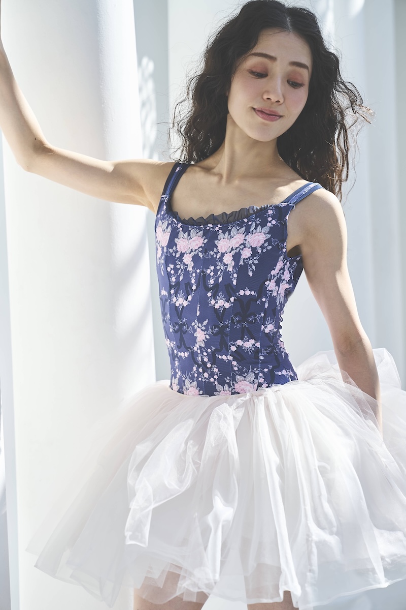 デコルテのスクエアラインとバックスタイルが美ラインなレオタード。