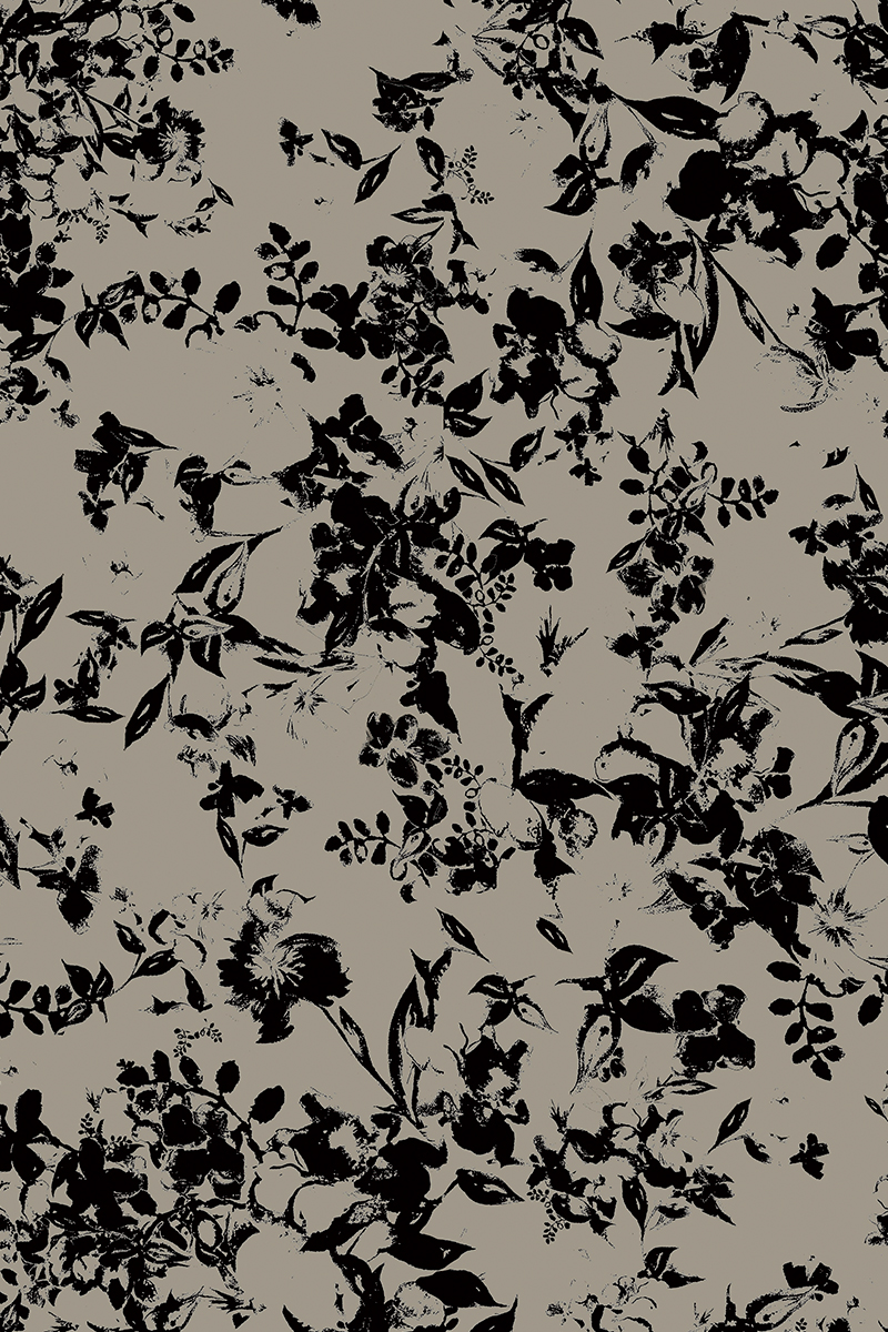 ニュアンスのあるグレーをベースに、繊細でありながら印象的なピンクベージュのフラワーモチーフを描いたファブリック。