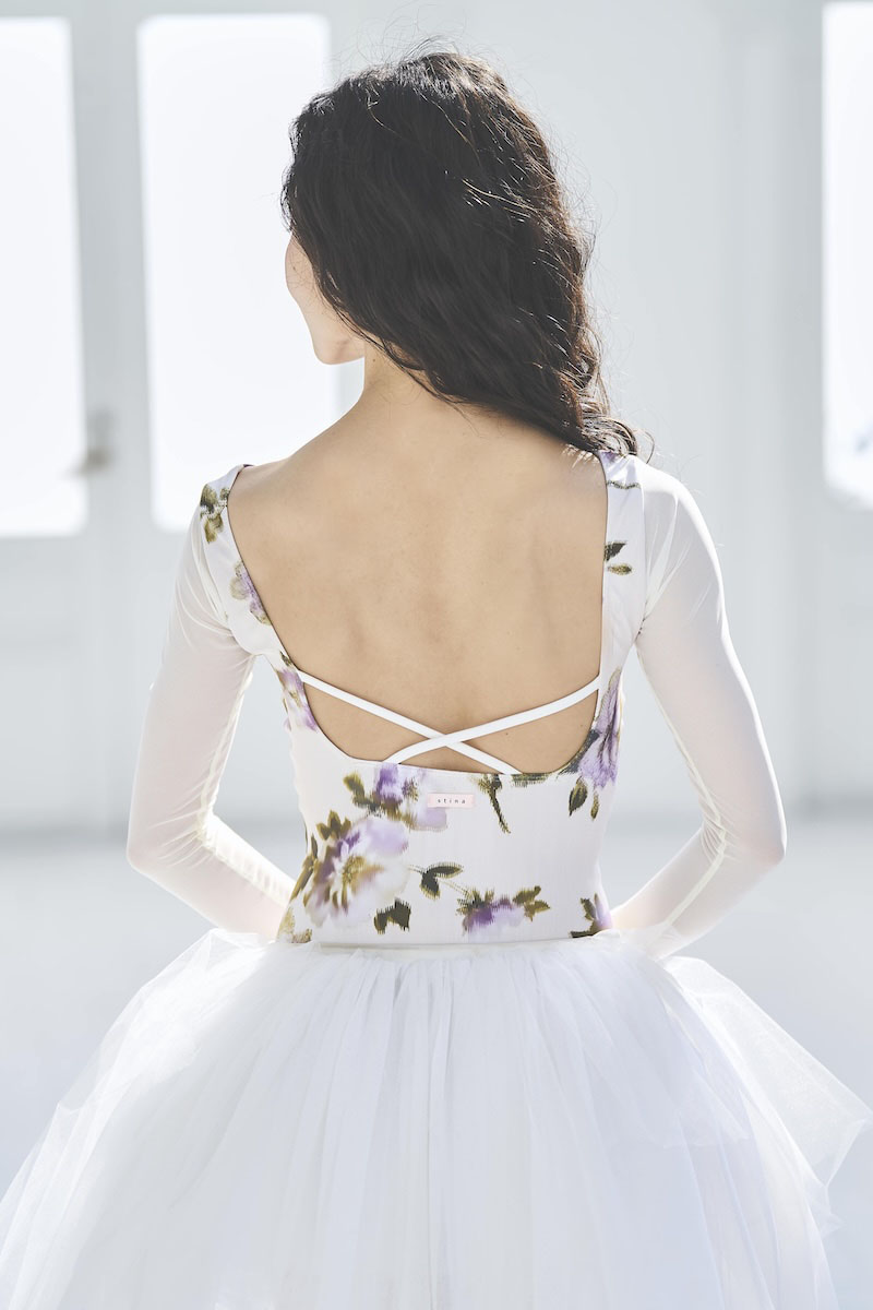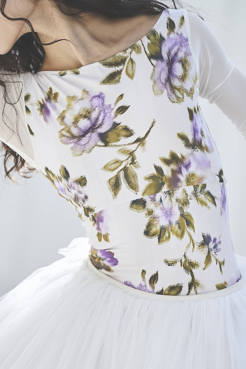 ボートネックレオタードと長袖がドッキングされた大人気の型。