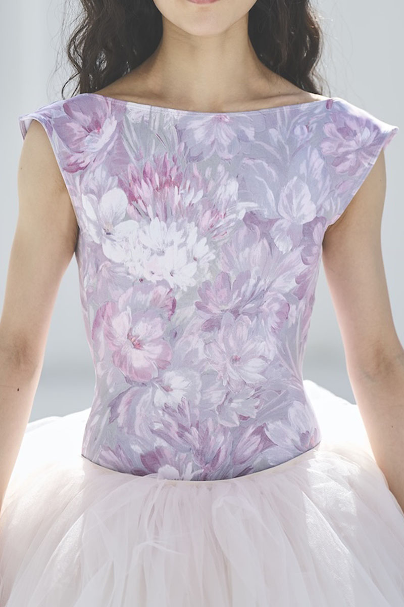 type K boat neckはオリジナル生地をふんだんに使用し切り替えなしの総柄仕様となっています。着心地やサイズ感はtype Sをそのまま反映し、より立体的に体を美しく見せる為のオリジナル生地を製作しました。首元はボートネック、袖口は少し肩が隠れるフレンチ袖。背中のラインは女性らしさを引き立てるエレガントなラインに。