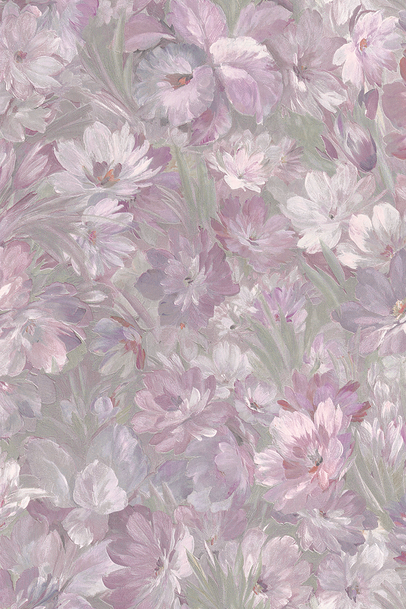 やわらかなピンクの濃淡で描かれた花々が重なり合う、優美でロマンティックなカラー。