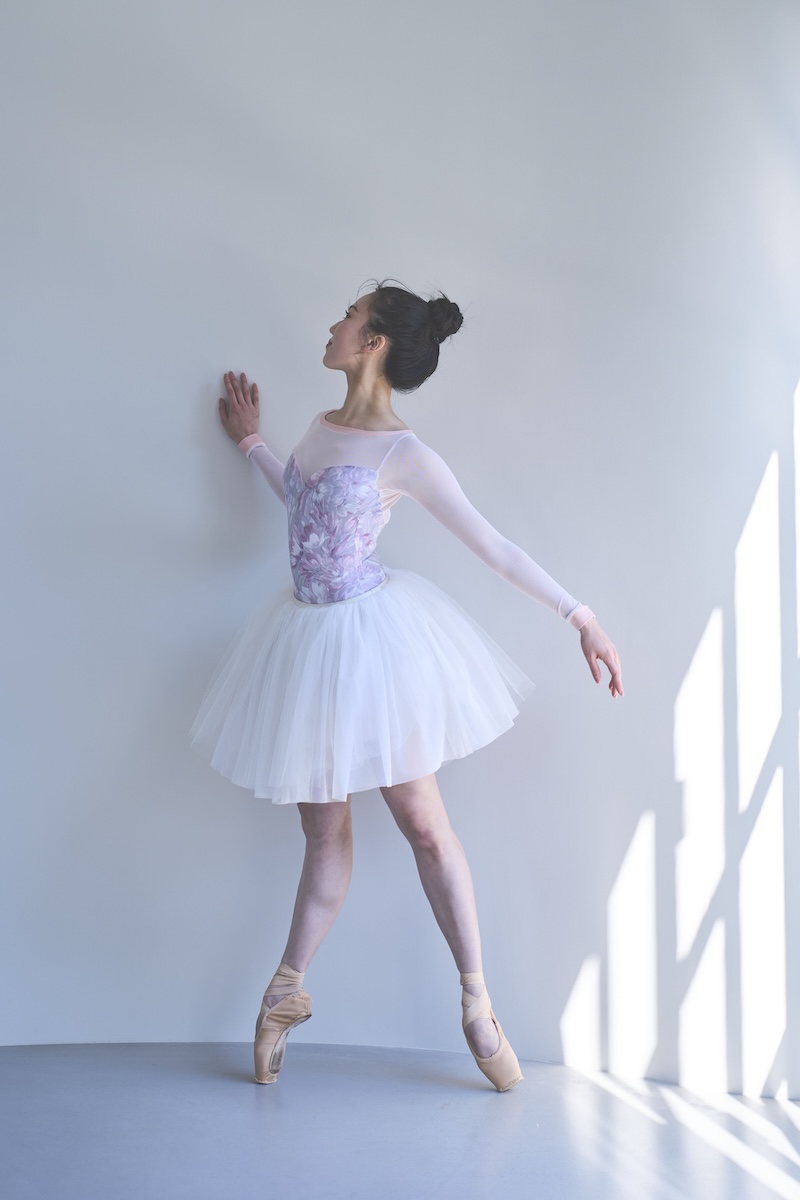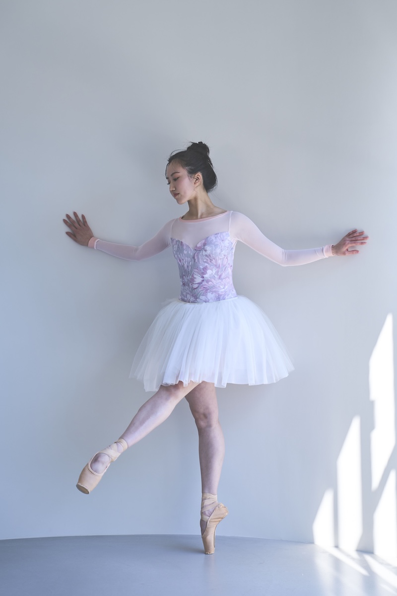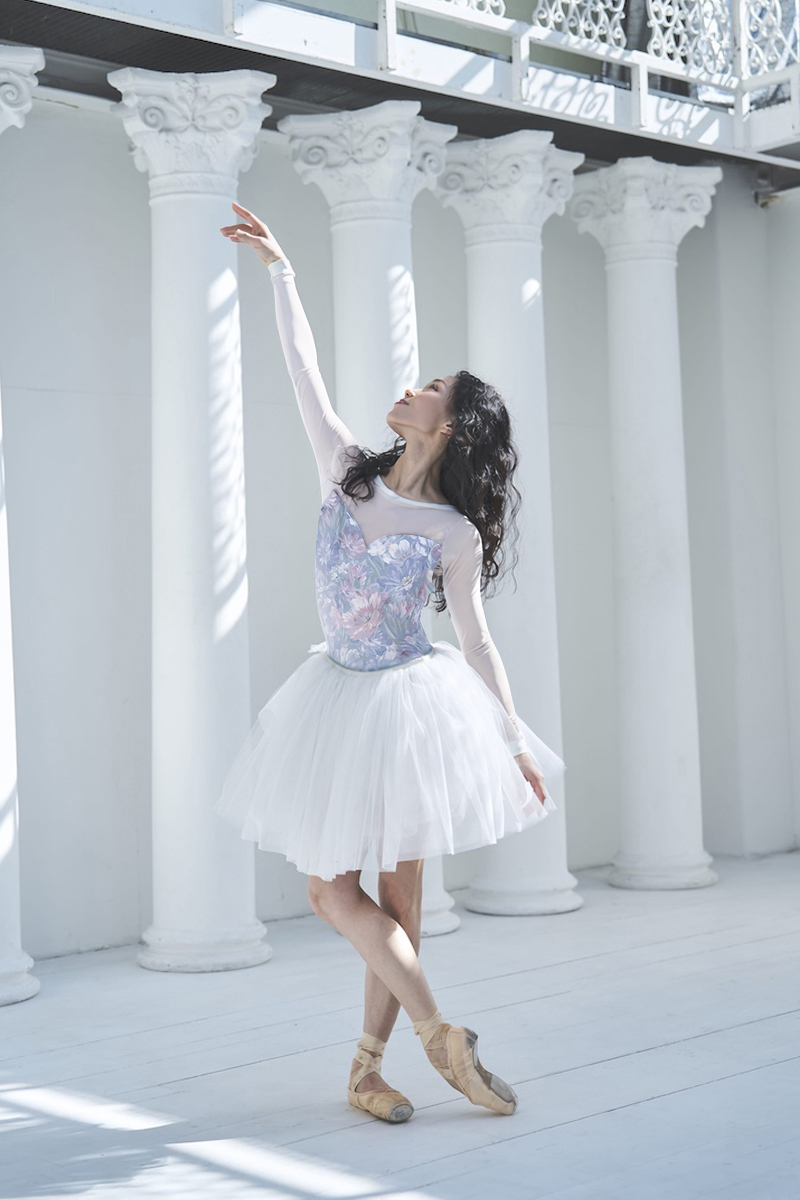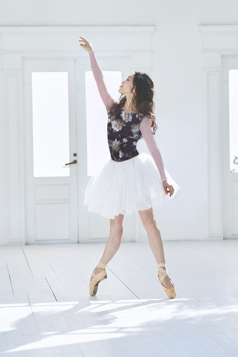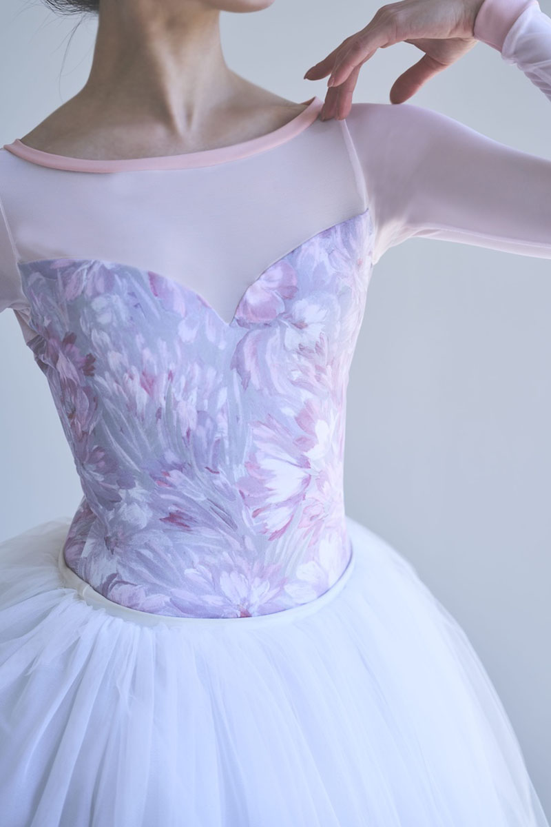 light pinkのパワーネットが柔らかく肌になじみボディラインを優しく見せ、華やかな印象に。