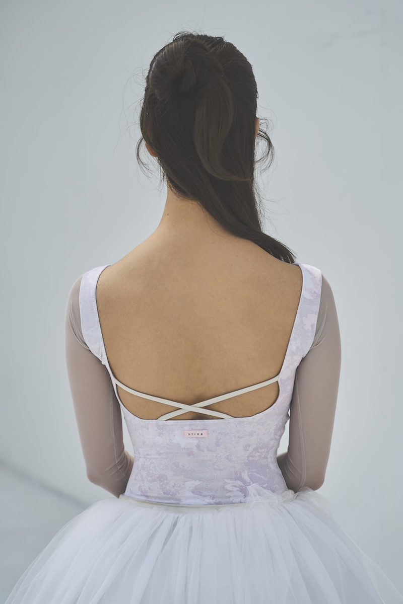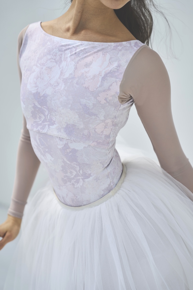 ボートネックレオタードと長袖がドッキングされた大人気の型。